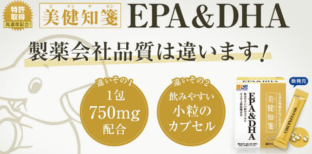 ユンケルを販売している佐藤製薬のサプリメントです。DHAとEPAを合わせて750mgも配合しており、業界でもトップクラスの含有量となっています。アルミパックを使用しており、ビタミンEを配合することで酸化を防ぐ仕組みです。
